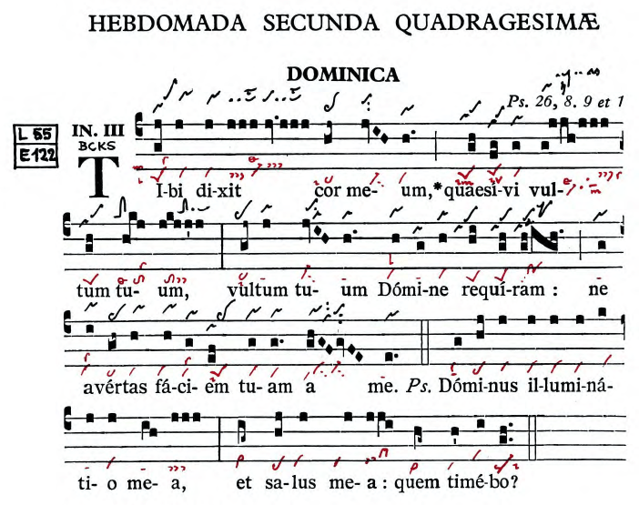 El introito de la misa del II domingo de Cuaresma (Sal. 26, 8.9.1) dice: Tibi dixit cor meum, quaesivi vultum tuum, vultum tuum, Domine, requiram: ne avertas faciem tuam a me (Contigo habló mi corazón, sólo ansié contemplar tu rostro; lo buscaré, Señor, no lo escondas a mi vista). Tanto textual como musicalmente podemos verSigue leyendo «La Santa Misa desde el canto gregoriano 08 – II domingo de Cuaresma»